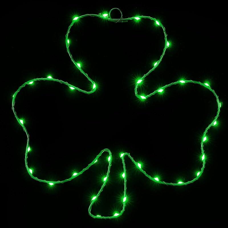 Bright shamrock lighting sign: the with pre-assemble 40 LED, the shamrock shape decor produces bright lights and light up your wall, window, front door, floor, tree, patio, garden or every corner of your house, perfect for indoor or outdoor use