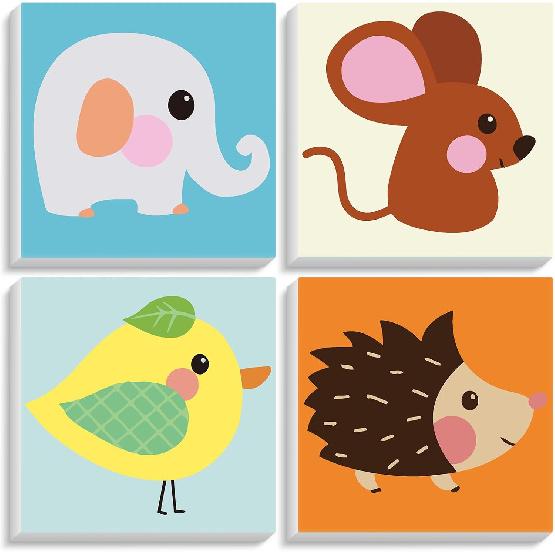 🎨【What's Included In Offito Kids Paint By Numbers Kit】This 4 pack different patterned kids paint by numbers kit contains the following for each set: 1 wooden framed canvas (8 * 8 in), 1 set of Acrylic Paints paints, 2 wall-mounted hooks & screws, 2 brushes, 2 adhesive hooks, 1 color postcard guide with the final image of the canvas.