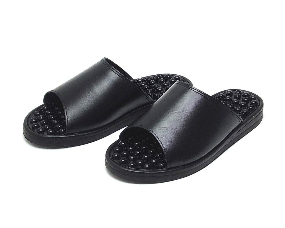 NISSEI Men's Genuine Leather Sandals with Warty Insoles, Made in Japan, 7161, Black, Size M (24.5-25.0cm)