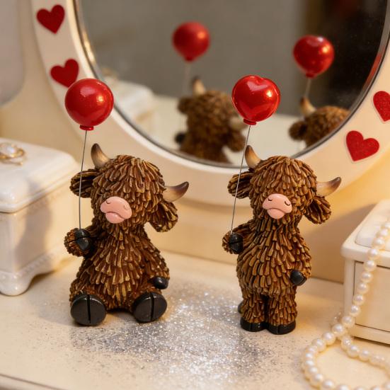 Festlig Highland Cow-prydnad: Den bruna Highland-kon är utsmyckad med klarröda detaljer som frammanar en varm julstämning.. Denna unika kombination bevarar figurinens bedårande charm samtidigt som den tillför en rik festlig känsla, perfekt för Alla hjärtans dag och säsongens dekorations teman.