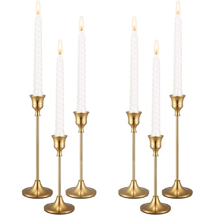Candle Holders,Set of 6 Candlestick Holders for Taper Candles, Brass Gold Modern Decorative Candle Stick Holder for Table, Mantel, Wedding, Dinning,