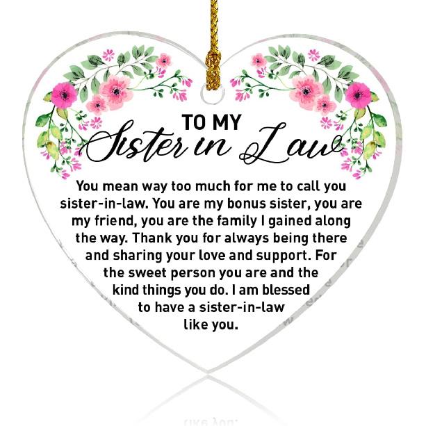 Sister in Law Ornament Gifts, Sister in Law Birthday Wedding Christmas Keepsake Gifts for Sister in Law Acrylic Heart Hanging Ornament Gifts, Sister