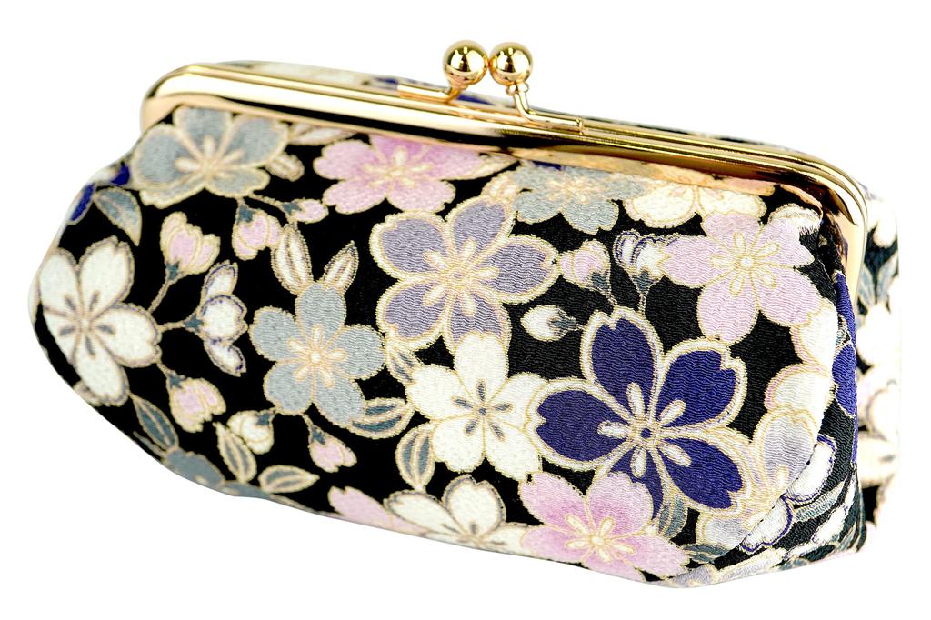 Uni Tillverkad i Futago Chirimen Japanskt Mönster Kosmetisk Necessär Blomma Marinblå (0105-10) Seni, Japan, [Körsbärsdesign, Blå]