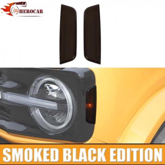 2pcs Front Side Lights Lamp Cover Trim Bezels For Ford Bronco 2021+ Smoked Black