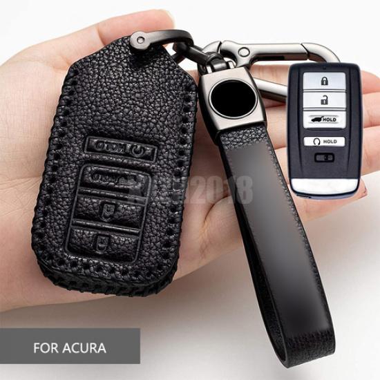 For Acura RDX RLX ILX MDX TLX Leather 4 Buttons Car Remote Key Fob Cover Case