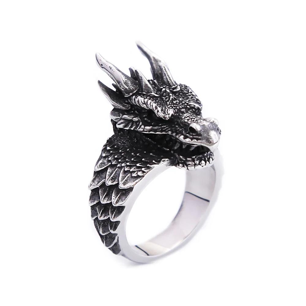 Nordisk Vintage Rostfritt Stål Viking Drakehuvud Ringar Vikingar Drakfjällsring För Män Kreativa Djur Smycken Gåvor