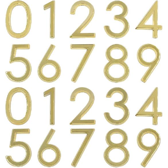 Pack of 20, Self Adhesive Golden Waterproof Mailbox Numbers 0-9, lyfLux Door Address Number Stickers For Apartments, Hotel, Offices, Decoration