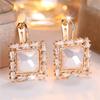 White Zircon Big Square Stone Geometric Hoop Earrings For Women Vintage Gold Color Ear Buckle Wedding Jewelry Versatile Gifts