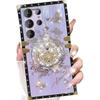 for Samsung Galaxy S25 Ultra Glitter Kickstand Case, Cute Luxury 3D Bling Sparkly Floral Diamond Butterfly with Ring Stand Elegant Shockproof Women
