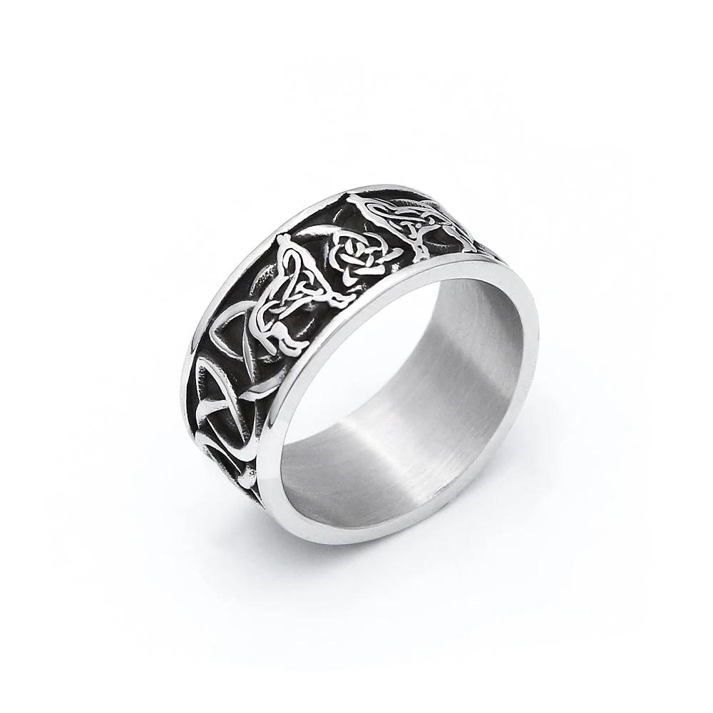 Vintage Simple Stainless Steel Nordic Double Wolf Rings For Men Women Vikings Odin Animal Ring Amulet Jewelry