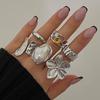 6Pcs Punk Exaggerated Metal Finger Rings Set for Women Vintage Flower Pearl Crystal Europe America Open Rings Luxury Jewelry