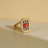 Vintage Rektangel Hjärta Måne Stjärna Emalj Ring för Kvinnor Rostfritt Stål Zirkon 18K Guldpläterad Fingerring Smycke Festgåva