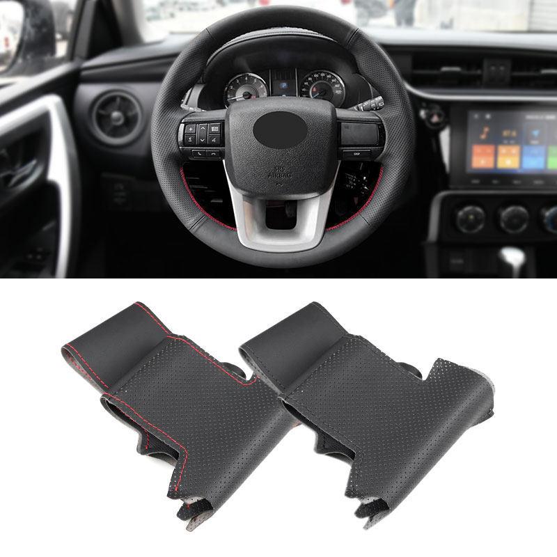 Perforated Leather Car Accessories Interior Steering Wheel Cover Trim For Toyota Fortuner 2016 2017 2018 Hilux 2015 -