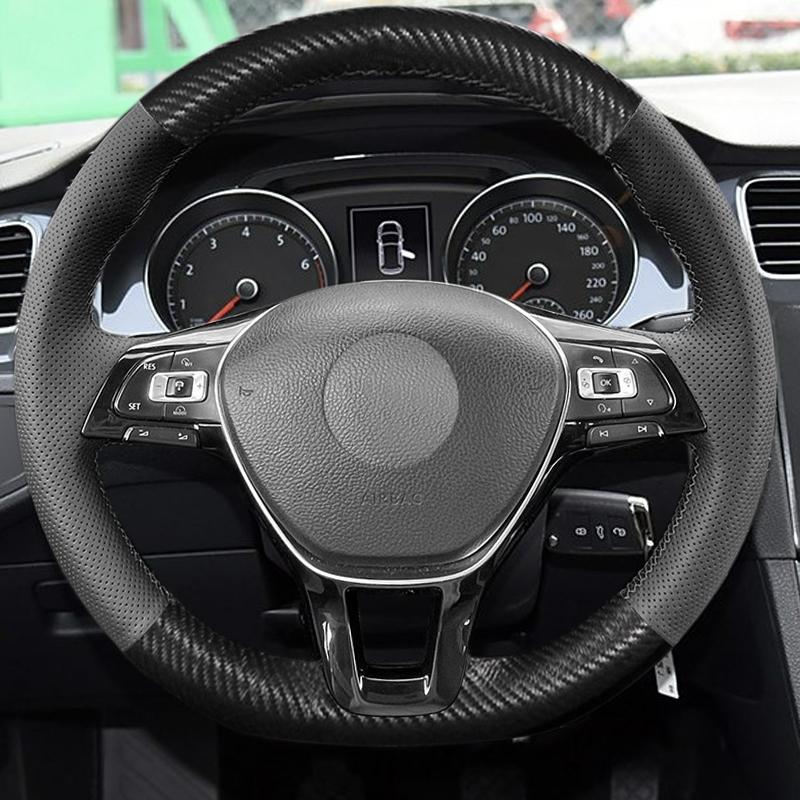 Carbon + Perforated Leather Car Steering Wheel Cover Trim For VW Golf 7 MK7 Passat B8 Polo Tiguan Touran Jetta Crafter Sharan