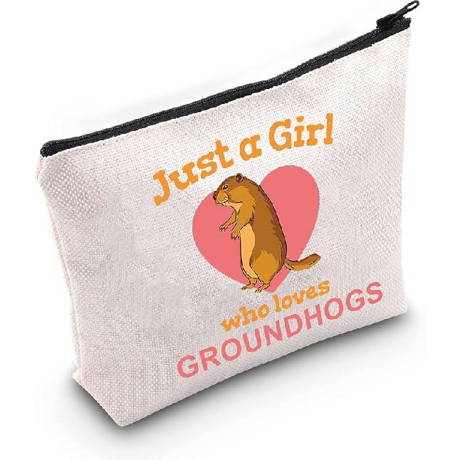 LEVLO Funny Groundhogs Cosmetic Make up Bag Animal Lover Gift Just A Girl Who Loves Groundhogs Makeup Zipper Pouch Bag Groundhogs Lover Gift (Loves