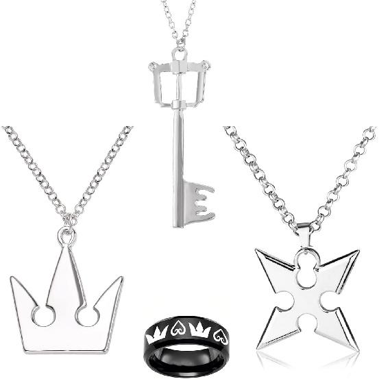 4 pcs Kingdom Hearts Ring Jewelry Sora's Crown & Roxas's Cross Necklaces cosplay accessories for Men Woman