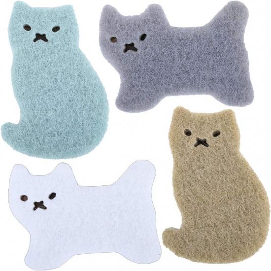 Kitchen Scrub Sponges Non-Scratch Multi-Use Heavy Duty Scrub Sponge for Dishes Pots and Pans Three-Layer Cat Shape Cleaning