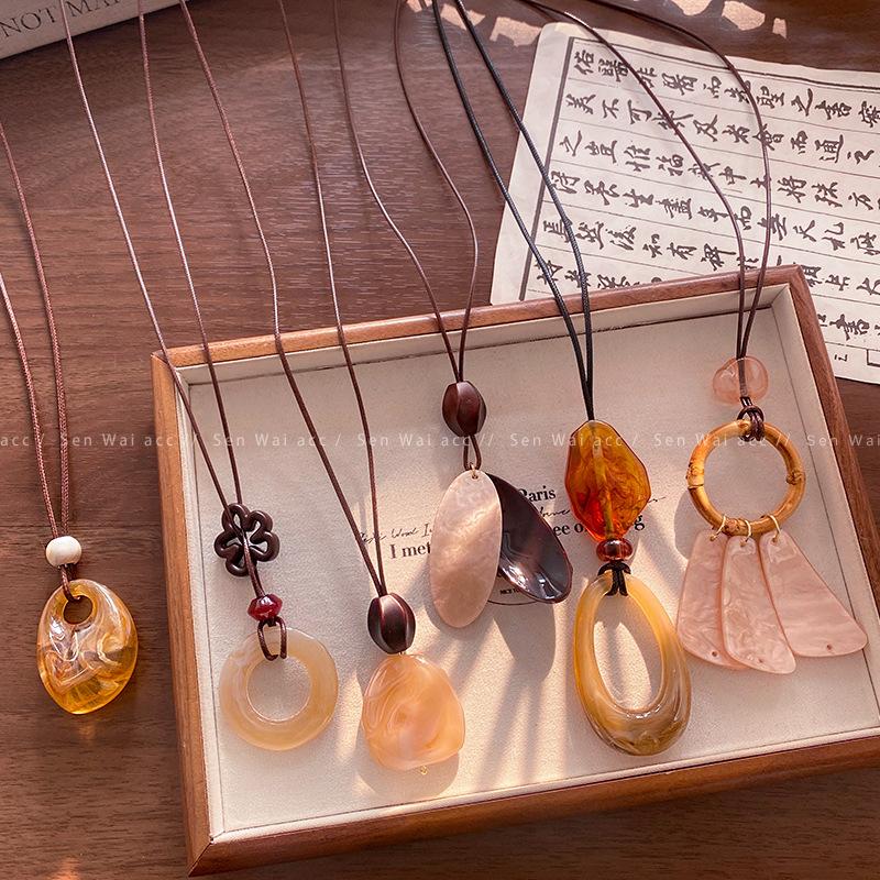 Autumn and winter Maillard coffee color smudge long necklace sweater sweater chain accessories