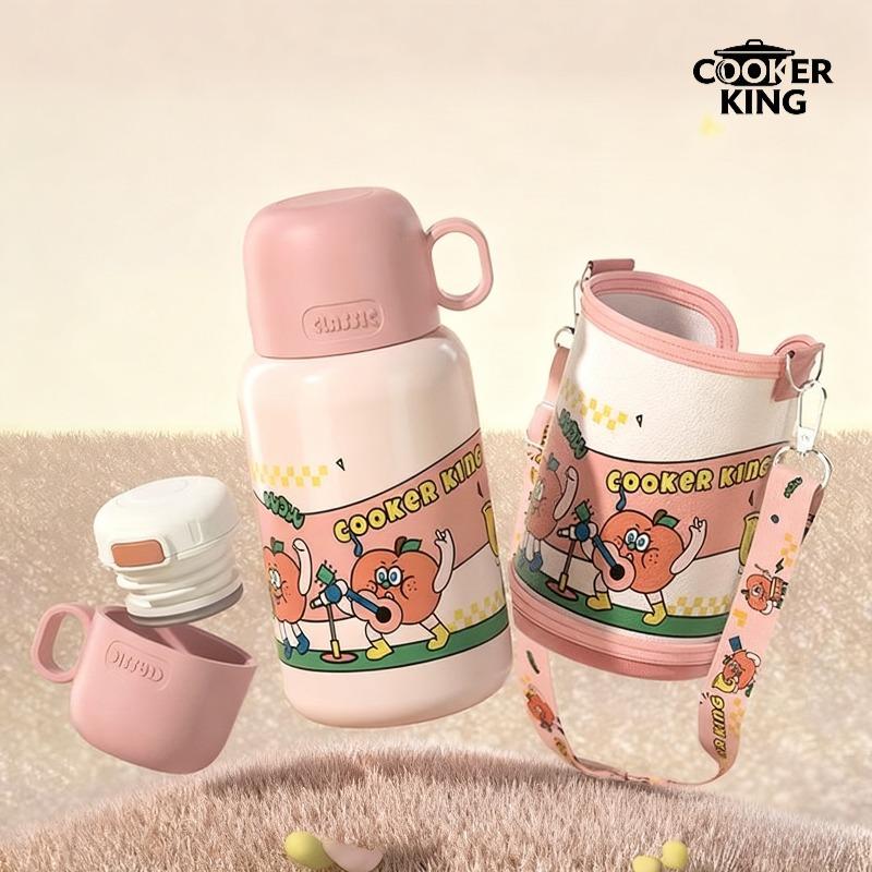COOKER KING Termosmugg 316 rostfritt stål med sugrör, barnvattenmugg, dubbelock, stor mage-mugg, drickmugg, 580 ml