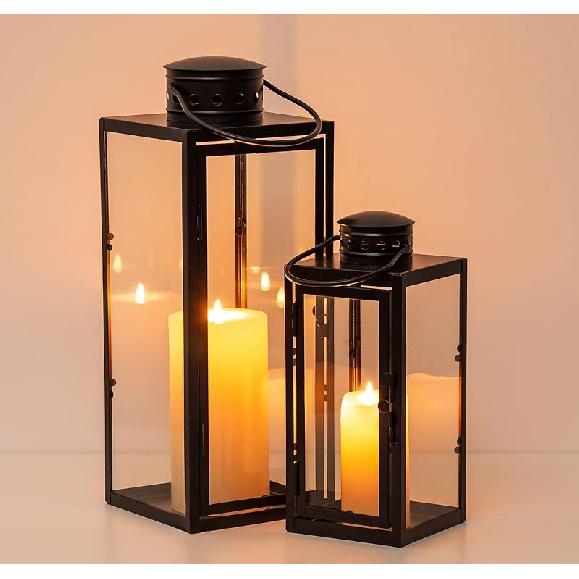 NUPTIO Vintage Lanterns Decorative Indoor: 9.5 inches Tall Hanging Farmhouse Metal Lantern Decor with Glass - Gold Distressed Candle Holder for