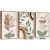 3 pcs Framed Boho Canvas Wall Art Green Sage Botanical Painting Wall Decor Pictures Mid Century Modern Minimalist poster prints for Living Room