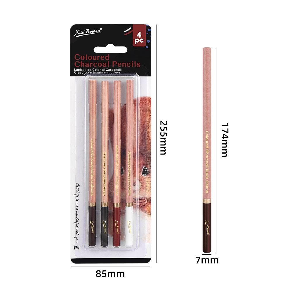4 st Professionellt set med färgade kolpennor för skissning Skisshighlight-pennor för teckning, skissning, skuggning, blandningspennor