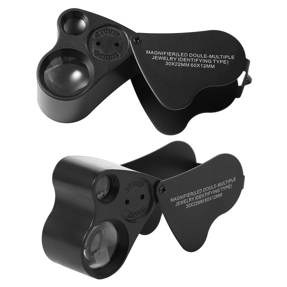 with Bright LED Light 30X 60X Illuminated Loupe Adjustable Lighting Flexible Foldable Jewelry Magnifier Hands Free Dual Lens