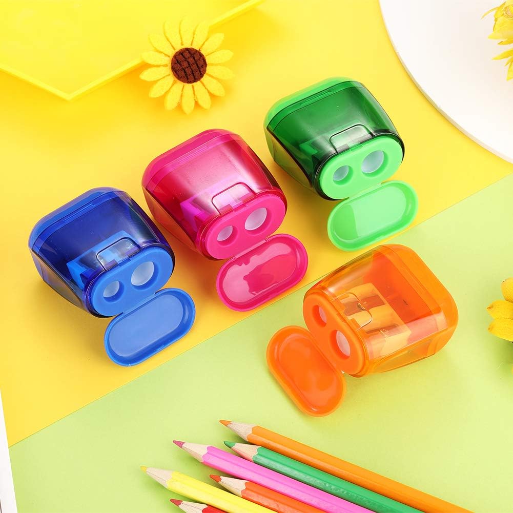Pencil Sharpener Dual Hole Pencil Sharpener Manual Pencil Sharpeners with Lid for School Home Office Supplies (24 Pieces)