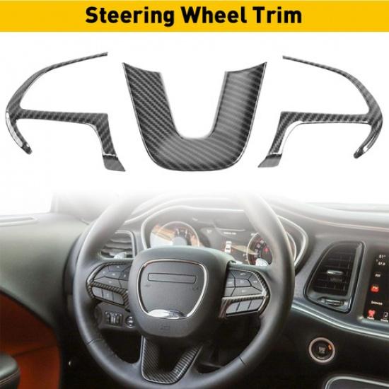 Fiber Carbon Steering Wheel Decor Cover Trim for Dodge Challenger Charger 2015+