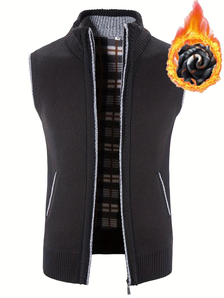 Herr Plus Sammetsförtjockad Väst Ståkrage Västjacka Tröja Kappa Kofta