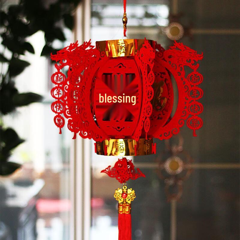 Flocked New Year Fu Character Lantern Pair