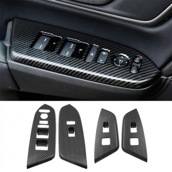 4pcs For 17-21 Honda CRV Accessories Carbon Fiber Door Armrest Panel Trim Covers