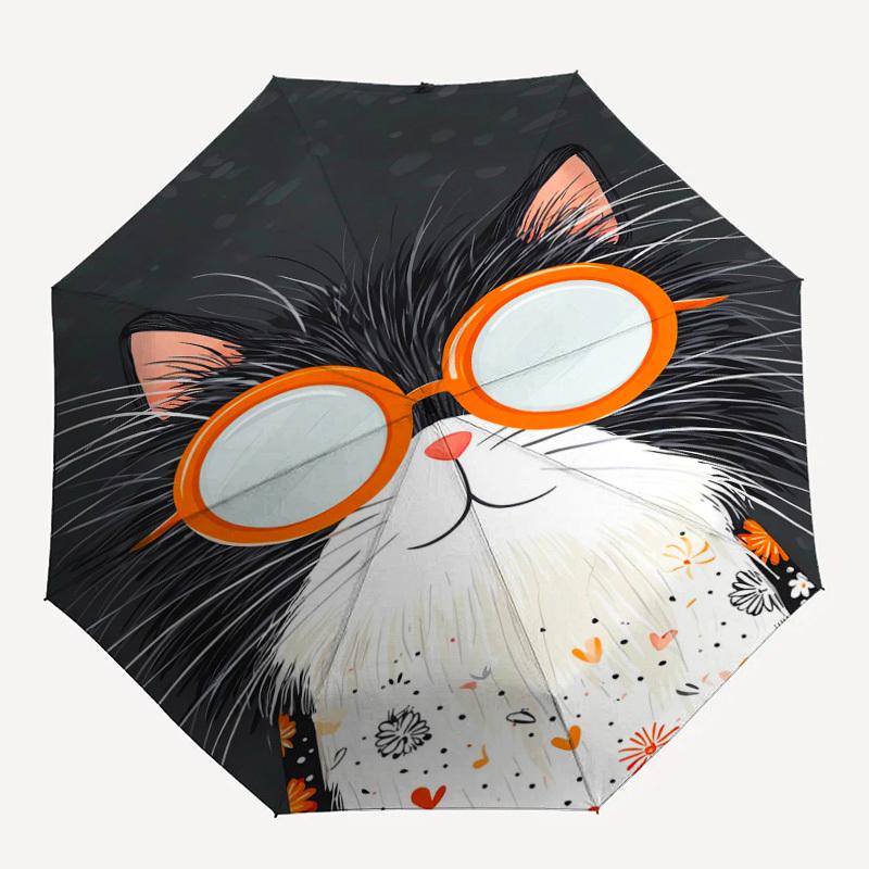 1pc cat glasses Pattern Umbrella Design Automatic Opening and Closing Umbrella, High-quality Travel Umbrella, Lightweight and Portable, -56