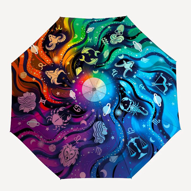 1PC astrology Pattern Small Travel Automatic Folding Umbrella, Compact Windproof Umbrella, Automatic Open/Close ,Gift-091541