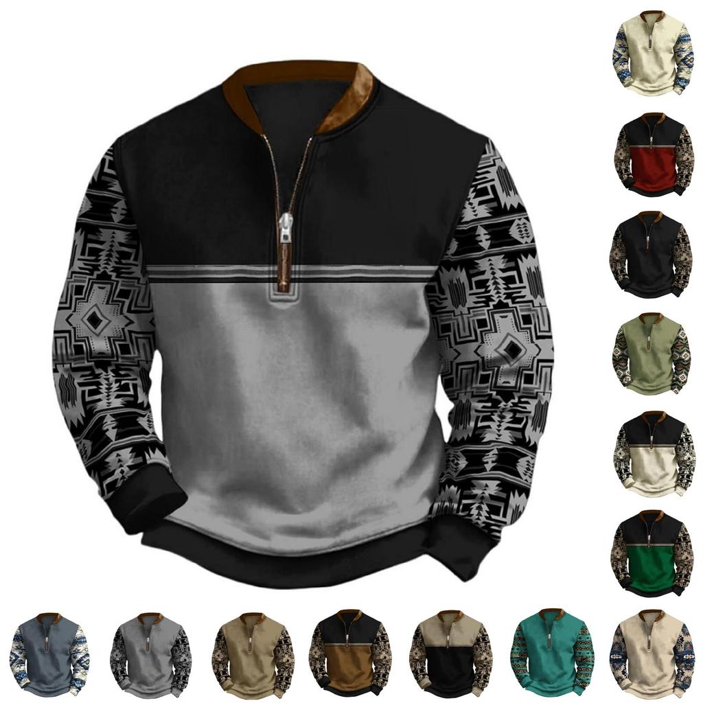 Men's Casual And Trendy Digital 3D Printed Round,neck Long,sleeved Half,pull One,piece Sweatshirt