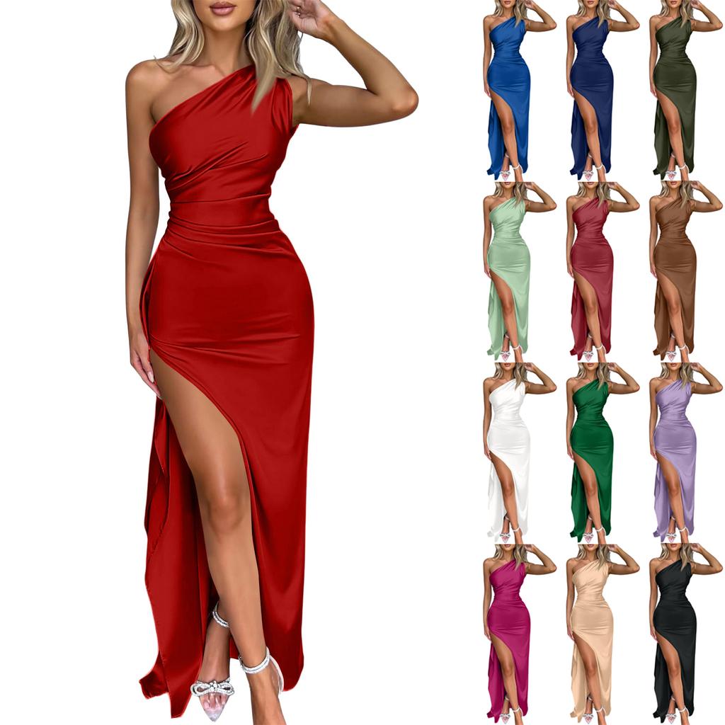Damklänning med rund halsringning, långa ärmar och markerad midja i färg