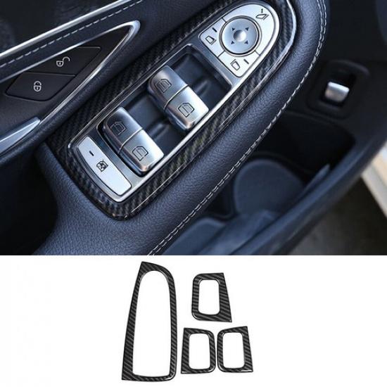 Carbon Fiber Window Lock Lift Panel Trim Frame 4X For -21 Mercedes-Benz GLC