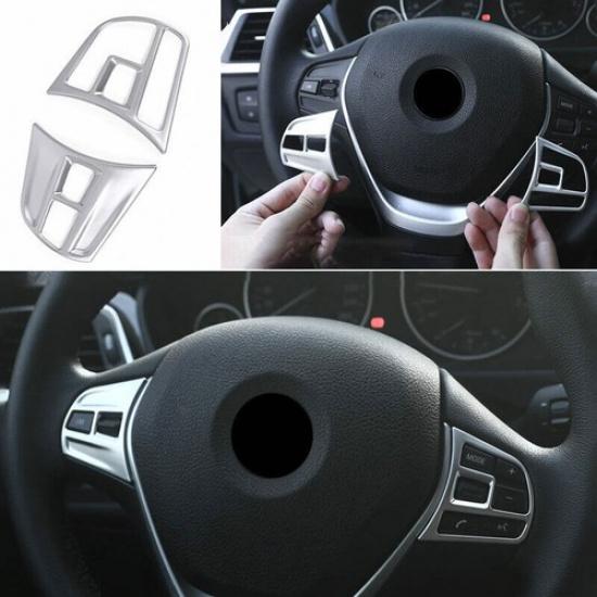 For BMW 3 4 Series GT 2013- ABS Silver Steering Wheel Button Cover Trim 2PCS