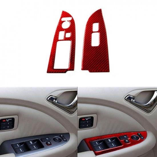 2x Red For Honda Odyssey 2005-2010 Carbon Fiber Front Window Control Cover Trim