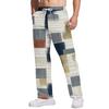 Herr Casualbyxor med fickor Randigt Rutigt Tryckt, Lös Rak Ben, Elastisk Midja med Dragsko För Daglig & Casual Användning