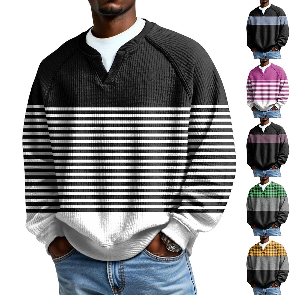 Herrfritidshuva Utomhus V-hals Vågmönster Långärmad