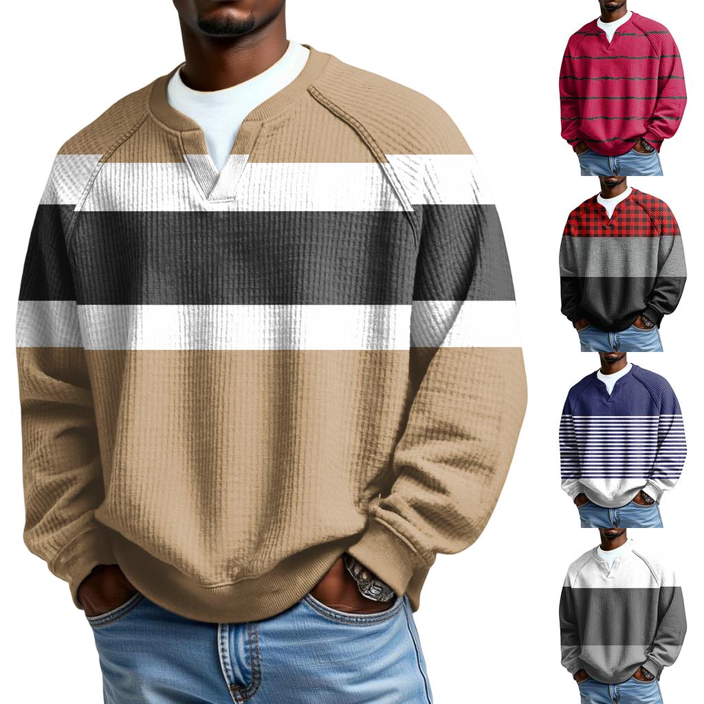 Herrfritidshuva Utomhus V-hals Vågmönster Långärmad