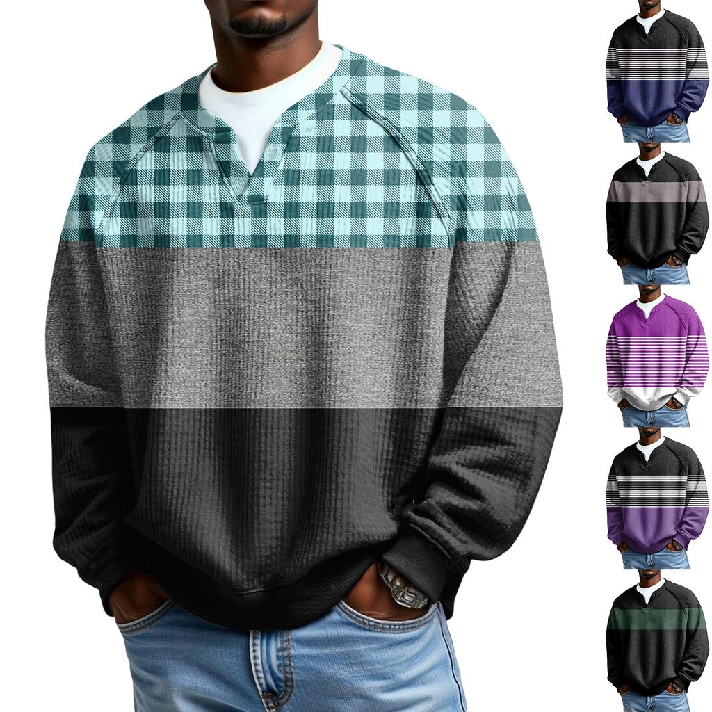 Herrfritidshuva Utomhus V-hals Vågmönster Långärmad