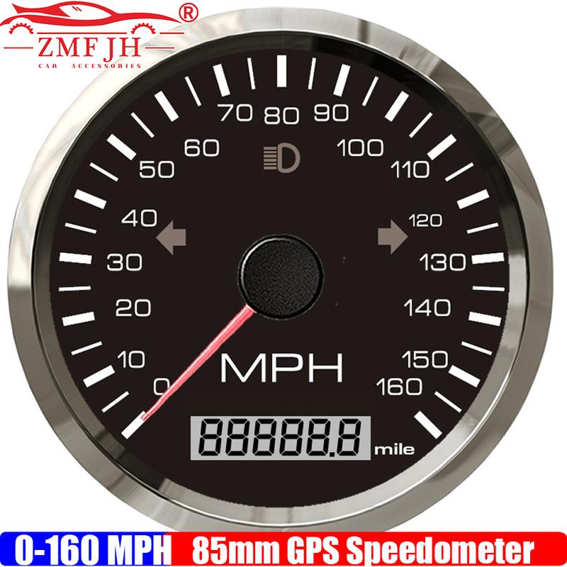ZMFJH 0-160MPH 85MM GPS Speedometer Gauge with Antenna Red Backlight Odometer High Beam Turn Light for Boat Yacht Car 12V24V
