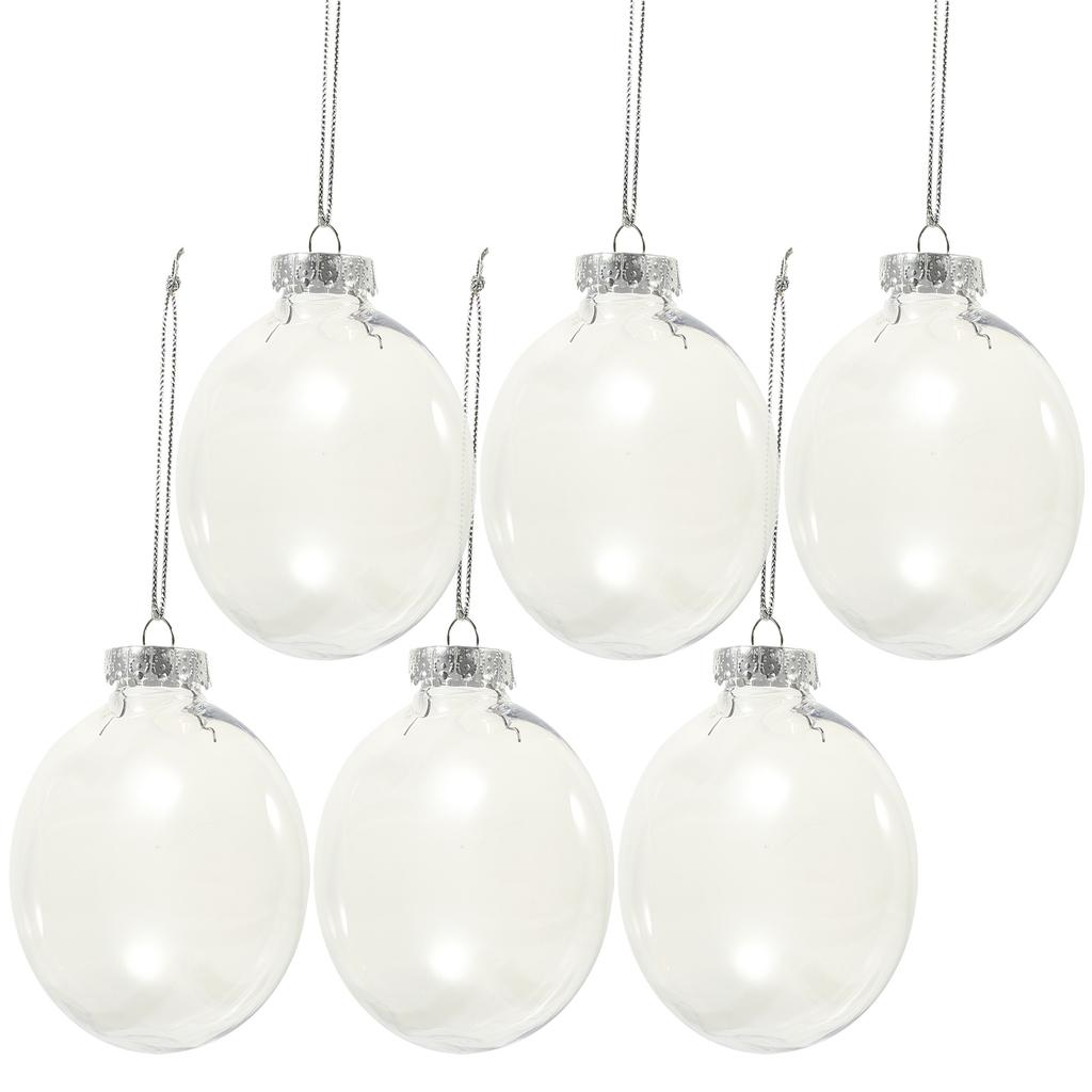 6pcs Christmas Flat Ball Decor Fillable Transparent Pet Plastic Diy Hanging Ornament For Party Wedding Candy Decoration