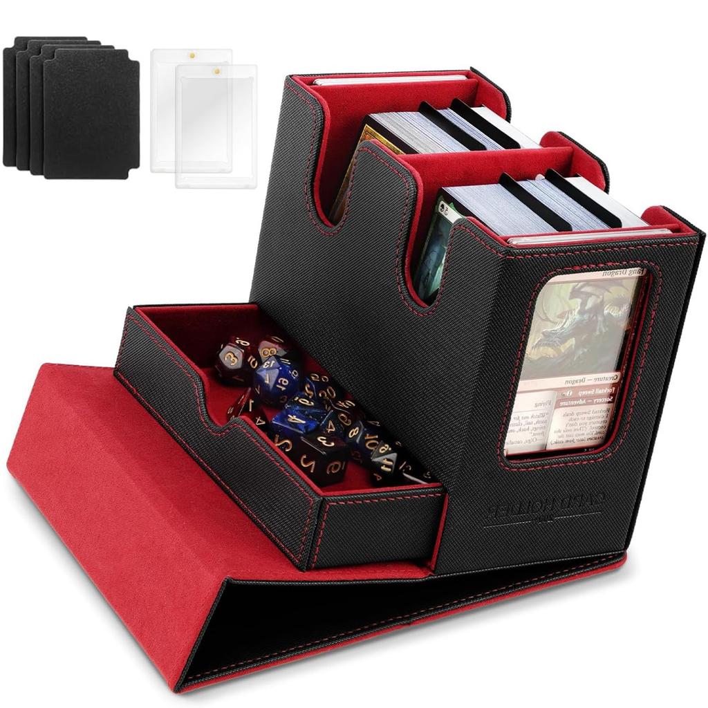 Multifunctional Storage: The main compartment and side pockets can hold up to 200+ trading cards, with or without sleeves. It also comes with a drawer for organizing small items like dice and counters.