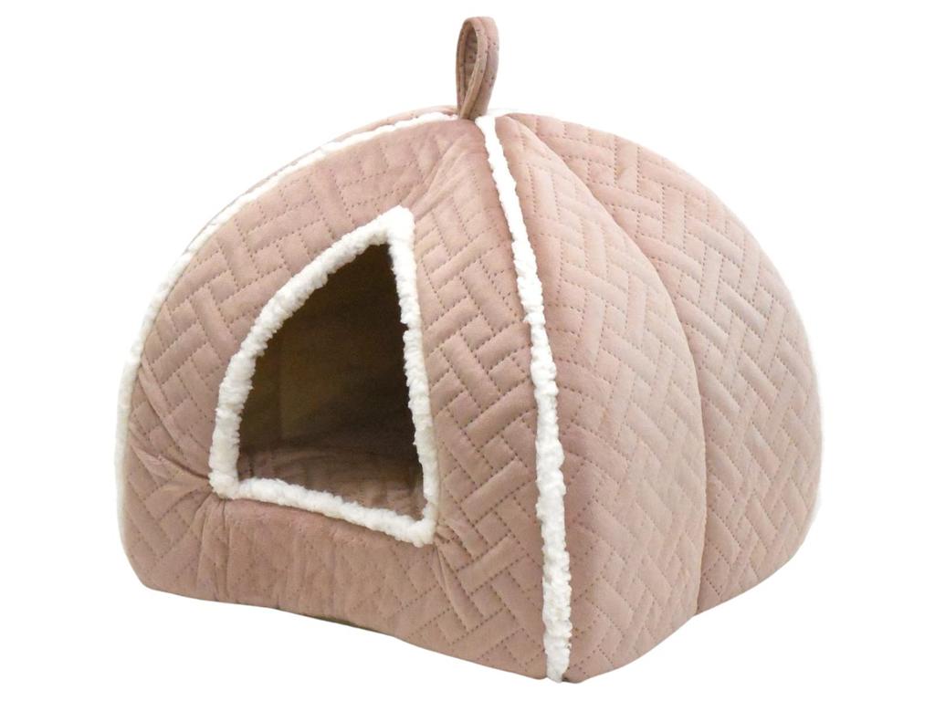 STYRIA Warm Dog and Cat House, Pet Dome, Winter and Year-Round Warm, Washable, Stylish, Cute Bed for Small Dogs, Fluffy Boa, Reversible Cushion (Pink)