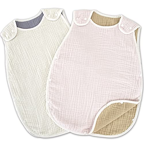 Keratta Ibul Babysovpåse, 100% Bomullsgasväv, för Nyfödda, Året-runt-användning, Åldrar 0-4 (d. Rosa x Vit, Set om 2, 6-lagers gasväv, Året runt)