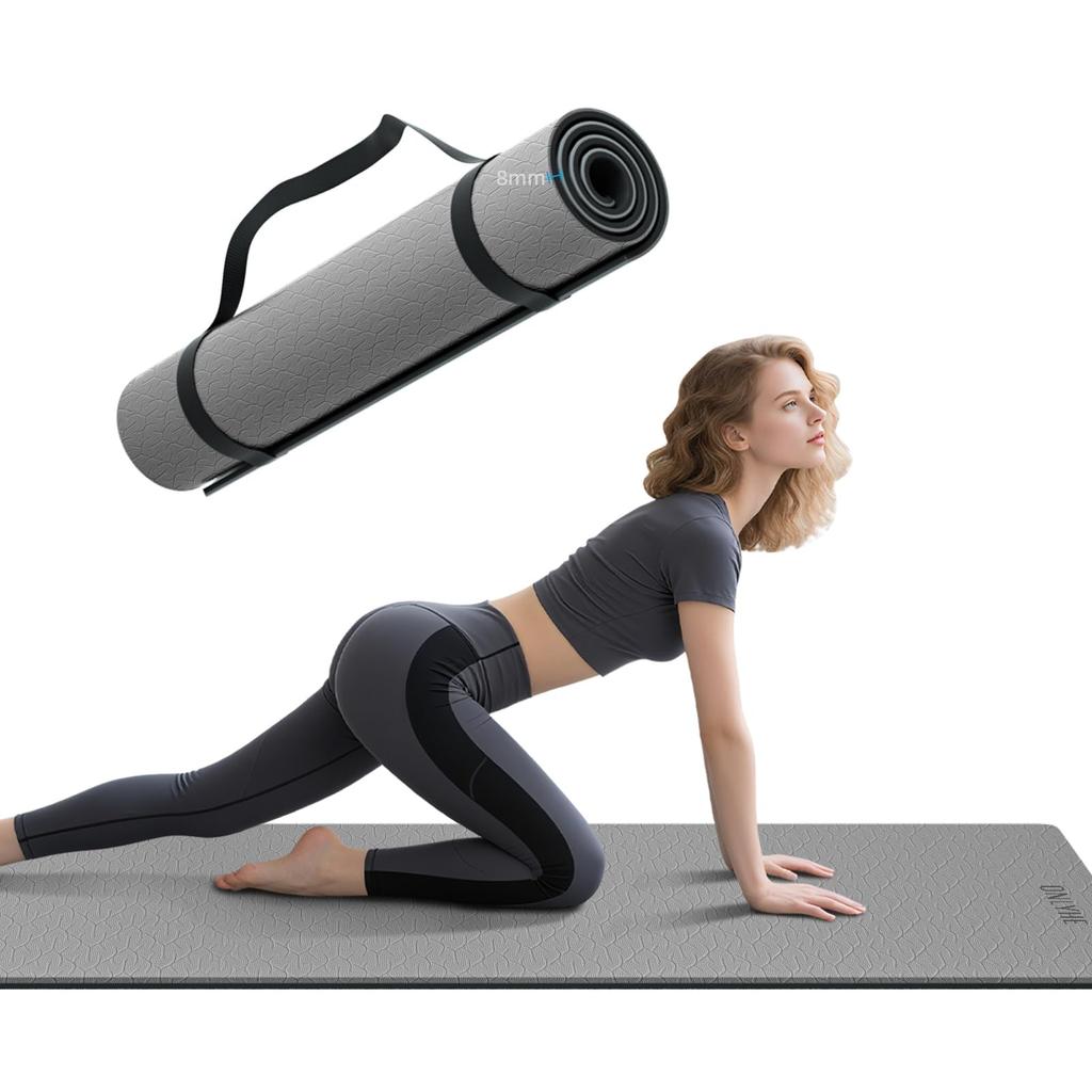 Onlyhe Thick Yoga Mat (8mm) 180cm*61cm, Suitable for Yoga, Casual Wear, Stretching, Pilates, and Home Gyms (Light Brown + Apricot)