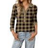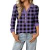 Women's Retro Street Lazy V,neck Long Sleeve Button Plaid Print Pullover Top